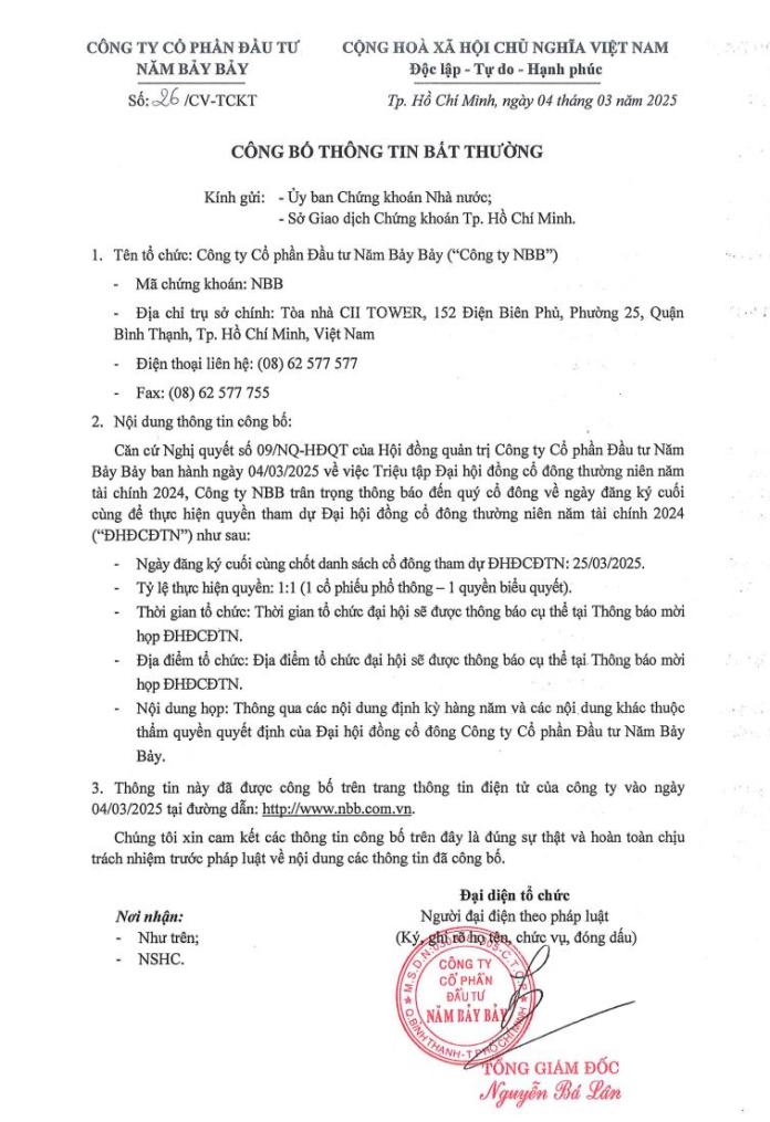 CBTT – Triệu tập ĐHCĐ thường niên năm tài chính 2024