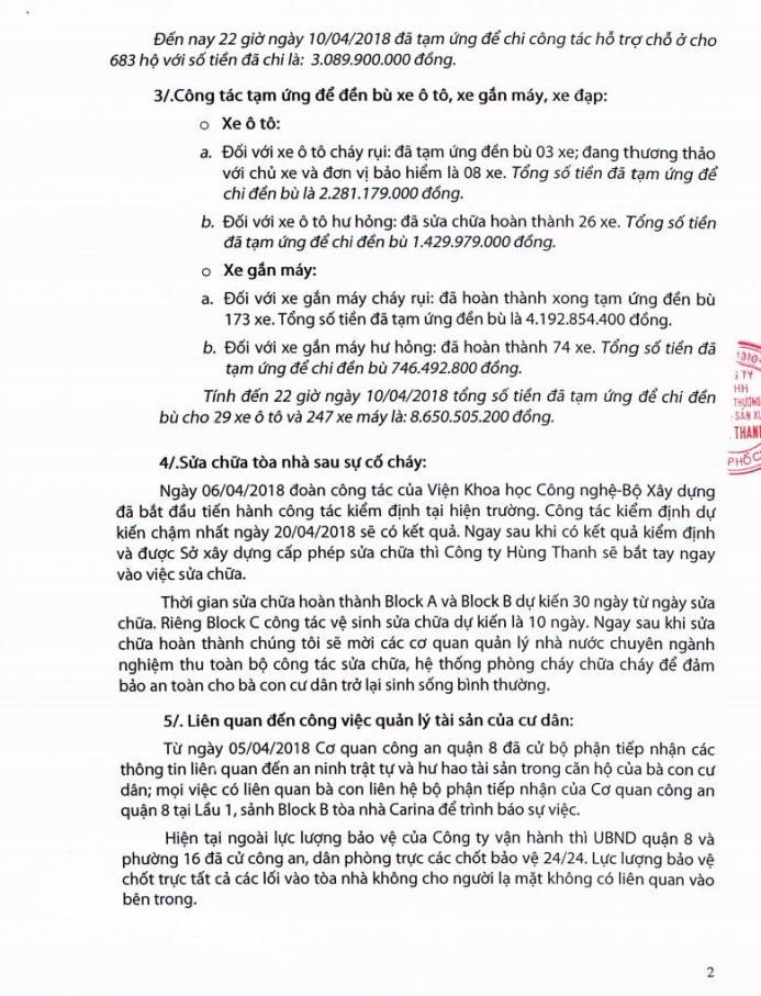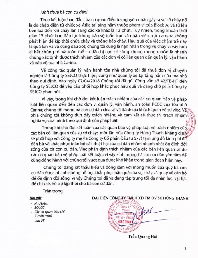 Thông báo công tác khắc phục sự cố hỏa hoạn tại Carina Plaza (lần 3)