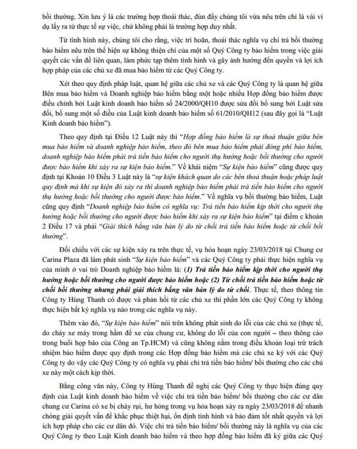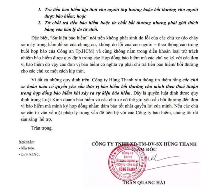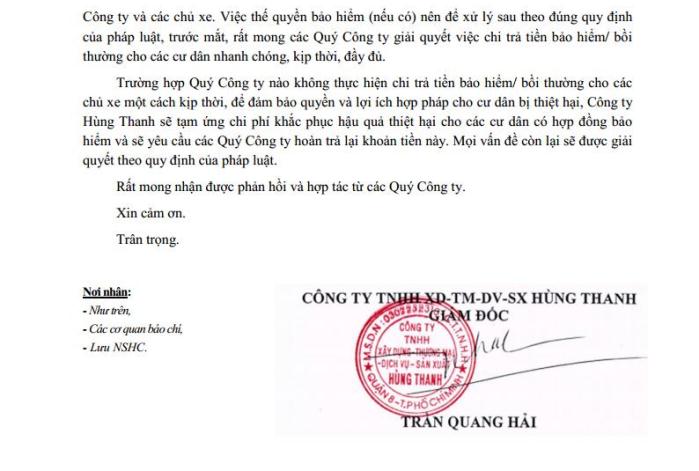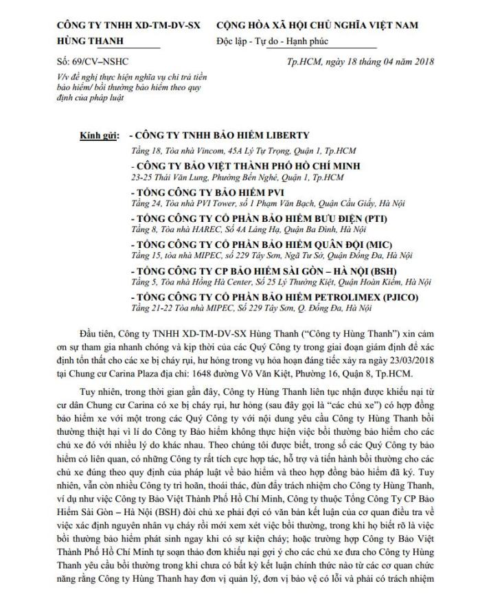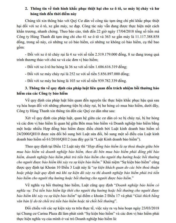 TB v/v khắc phục hậu quả thiệt hại xe trong vụ hỏa hoạn tại Carina Plaza